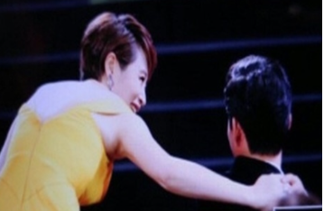연인이었다가 헤이진 사이였음에도 불구하고 당시 MC였던 김혜수는 단상아래로 내려와 유해진과 반갑게 인사를 하고 두 사람은 가볍게 손도 잡습니다.