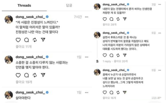 최동석 또 새로운 의미심장한 SNS 글 올려..