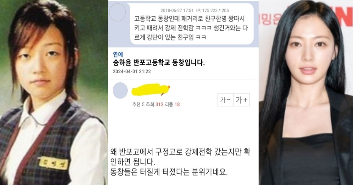 제보자에 따르면 송하윤은 이후 다른 집단 폭행 건에 연루돼 처분받고 서울 강남구의 다른 고등학교로 강제 전학을 가게 되었다고 합니다.