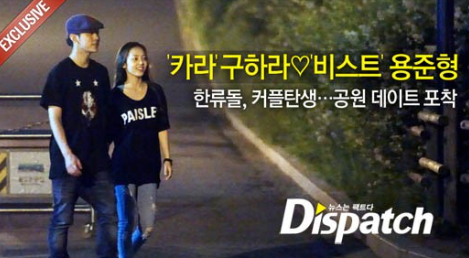 용준형과 구하라는 2011년 6월 디스패치에 의해 열애설이 보도됩니다.